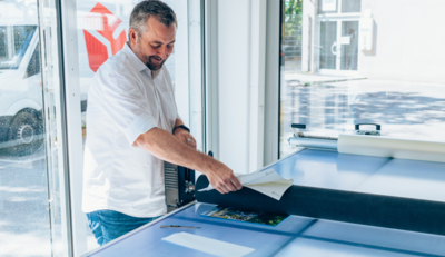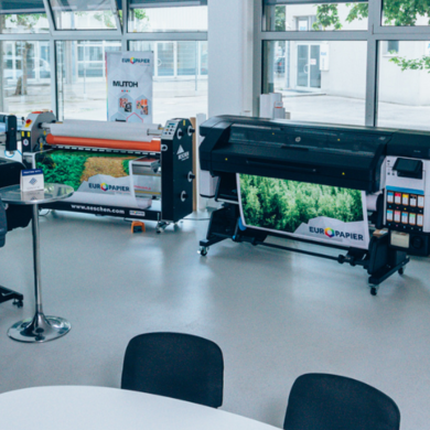 - Maschinen- und Softwaredemos (LFP Drucker, Laminatoren, Schneideplotter, Farbmessgeräte, Verarbeitungszubehör)