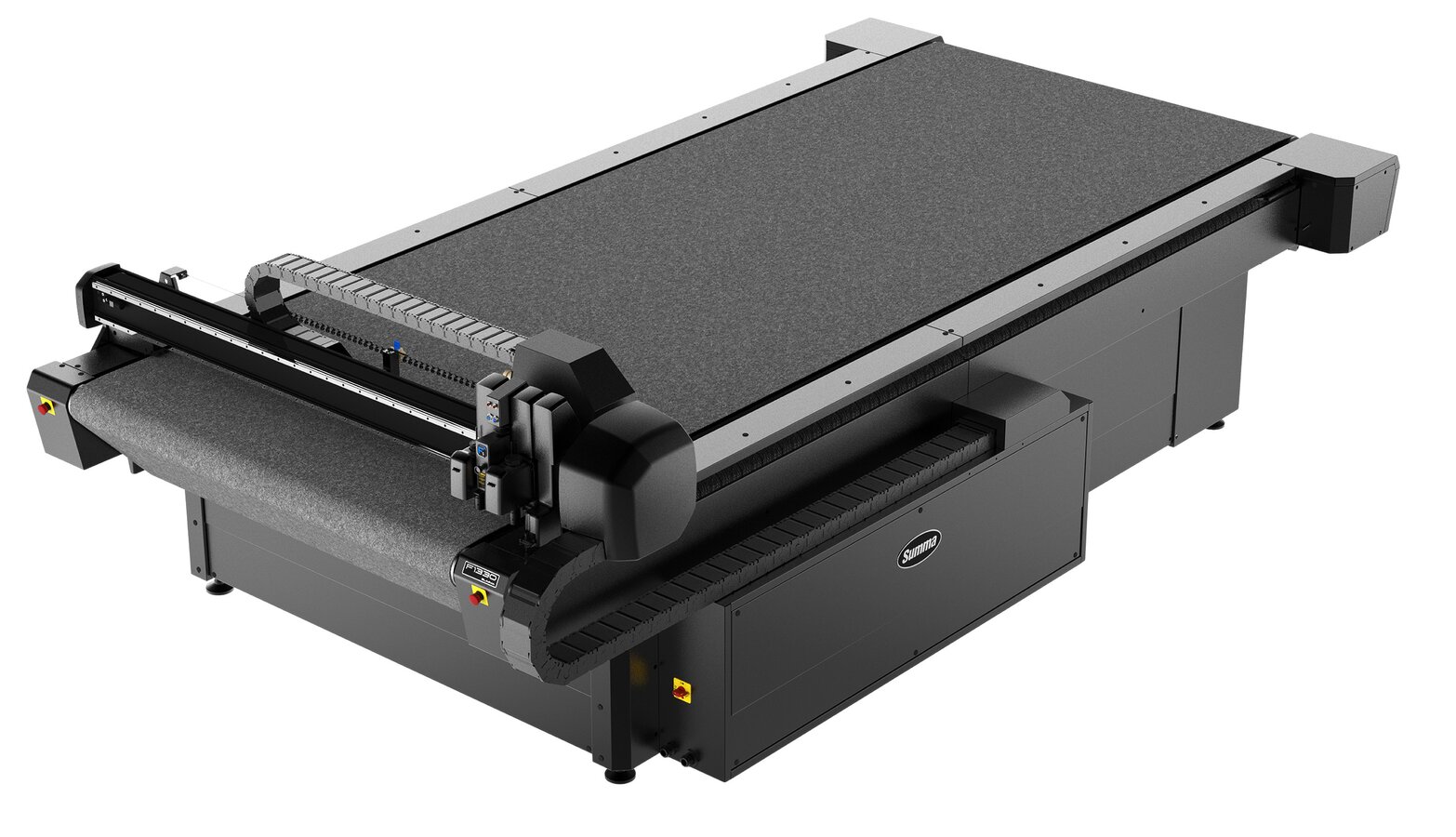 Mit der F Serie stellt Summa eine Produktlinie vor. Diese basiert auf Summa’s Erfahrung von über 30 Jahren in der Entwicklung und Herstellung von weltmarktführenden Rollenschneideplottern. Der Flachbett-Schneideplotter schneidet eine Vielzahl von Materialien: Rollenmedien, Kunststoffe, Kartonagen, Foamboard und Ähnliches. Auf dem modularen Werkzeugträger können gleichzeitig 3 Werkzeugmodule montiert werden, welche man blitzschnell und einfach wechseln kann. Die automatische Werkzeugerkennung in Kombination mit digitaler und mechanischer Druck-und Tiefenkontrolle, gewährleisten ein äußerst präzises Schneiden unterschiedlicher Medien. Bereits die F Serie Basiskonfiguration verfügt über ein Schleppmessermodul und Summa’s leistungsstarkem Kamerasystem, zur optischen Erkennung unterschiedlichster Registrierungspunkte und Passermarken auf vielfältigen Materialien, für den präzisen Konturenschnitt von starren oder flexiblen Medien. Ein ständig wachsendes Sortiment von Werkzeugen baut die Fähigkeiten der F Serie weiter aus.