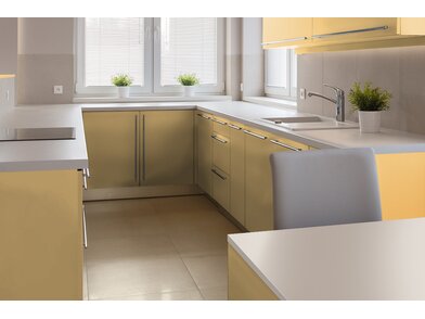 Bodaq S194 Beach ist eine robuste, 210 µm starke, verformbare Interiorfolie in eleganter Unicolor-Optik mit fühlbarer Haptik, mit der man durch Upcycling nicht nur die Umwelt schont, sondern auch Kosten spart, Zeit reduziert und nebenbei optische Akzente in Hotellerie, Gastronomie, Shops, Ladenbau oder Wohnräumen setzt. Bereits vorhandene natürliche Rohstoffe, wie z. B. Türen, Fenster, Fensterbänke, Fliesen, Treppen, Möbel usw., können umweltschonend wiederverwertet werden und schonen unsere Wälder und vermeiden Müll. Die PVC-Folie ist in mehreren Schichten aufgebaut und mit einem positionierbaren Luftkanalklebstoff für blasen- und faltenfreie Verklebungen ausgestattet. Der Schutzfilm auf der Folienoberfläche ist wasserresistent, schmutzabweisend, temperaturbeständig, strapazierfähig und pflegeleicht mit hoher Resistenz gegen viele Flüssigkeiten. Außerdem wirkt er antibakteriell und reduziert die Ansiedlung und Vermehrung von Mikroorganismen, was in Nassräumen ein besonders erwünschter Effekt ist. Die Folie ist frei von Phthalaten (Weichmachern) und schädlichen Schwermetallen, wie Blei oder Quecksilber, und wird mithilfe erneuerbarer Energien hergestellt. Von Beginn der Produktion bis zum fertigen Produkt sind alle CO² Emissionen erfasst und kontrolliert. Die Folie besitzt ein Brandschutzzertifikat B1 nach DIN 4102-1.