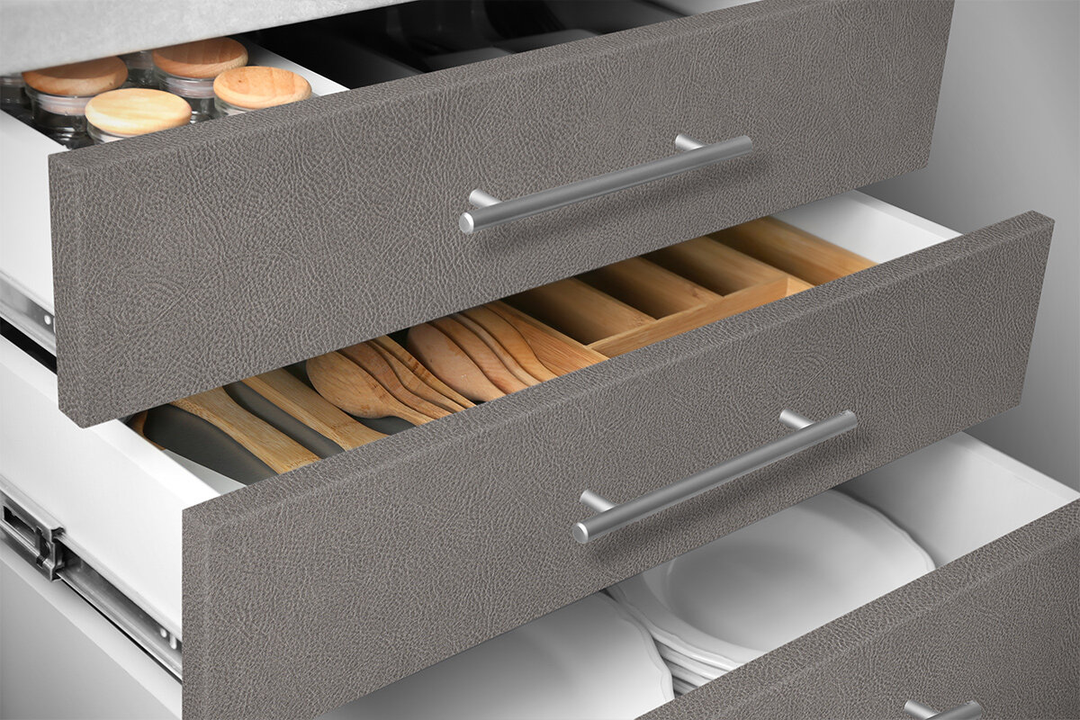 Bodaq TNS03 Grey Grained Leather ist eine robuste, 400 µm starke, verformbare Interiorfolie in genarbter Lederoptik mit fühlbarer Haptik, mit der man durch Upcycling nicht nur die Umwelt schont, sondern auch Kosten spart, Zeit reduziert und nebenbei optische Akzente in Hotellerie, ...
