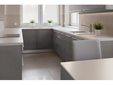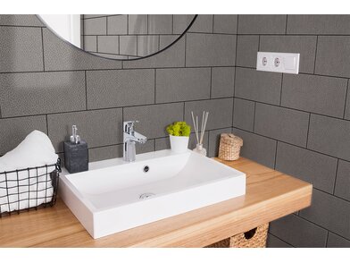 Bodaq TNS03 Grey Grained Leather ist eine robuste, 400 µm starke, verformbare Interiorfolie in genarbter Lederoptik mit fühlbarer Haptik, mit der man durch Upcycling nicht nur die Umwelt schont, sondern auch Kosten spart, Zeit reduziert und nebenbei optische Akzente in Hotellerie, Gastronomie, Shops, Ladenbau oder Wohnräumen setzt. Bereits vorhandene natürliche Rohstoffe, wie z. B. Türen, Fenster, Fensterbänke, Fliesen, Treppen, Möbel usw., können umweltschonend wiederverwertet werden und schonen unsere Wälder und vermeiden Müll. Die PVC-Folie ist in mehreren Schichten aufgebaut und mit einem positionierbaren Luftkanalklebstoff für blasen- und faltenfreie Verklebungen ausgestattet. Der Schutzfilm auf der Folienoberfläche ist wasserresistent, schmutzabweisend, temperaturbeständig, strapazierfähig und pflegeleicht mit hoher Resistenz gegen viele Flüssigkeiten. Außerdem wirkt er antibakteriell und reduziert die Ansiedlung und Vermehrung von Mikroorganismen, was in Nassräumen ein besonders erwünschter Effekt ist. Die Folie ist frei von Phthalaten (Weichmachern) und schädlichen Schwermetallen, wie Blei oder Quecksilber, und wird mithilfe erneuerbarer Energien hergestellt. Von Beginn der Produktion bis zum fertigen Produkt sind alle CO² Emissionen erfasst und kontrolliert. Die Folie besitzt ein Brandschutzzertifikat B1 nach DIN 4102-1.