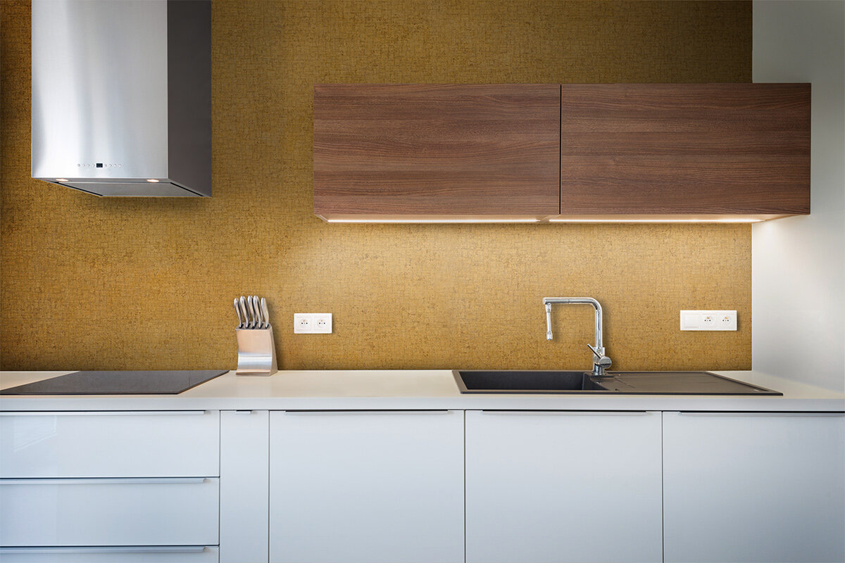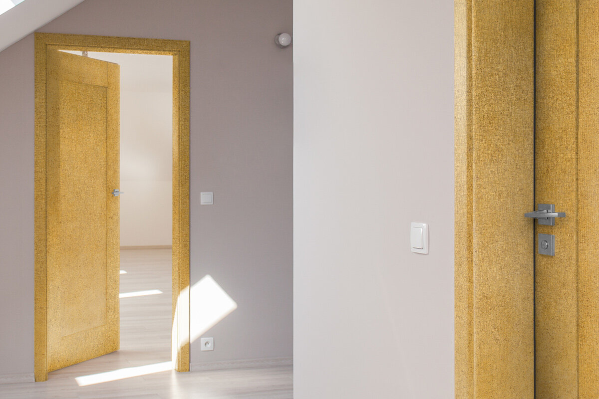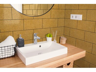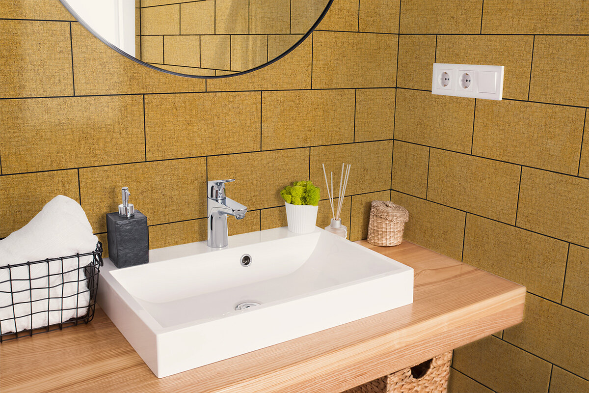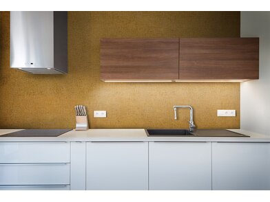 Bodaq APZ26 Classic Golden Fabric ist eine robuste, 210 µm starke, verformbare Interiorfolie in goldener Gewebeoptik mit fühlbarer Haptik, mit der man durch Upcycling nicht nur die Umwelt schont, sondern auch Kosten spart, Zeit reduziert und nebenbei optische Akzente in Hotellerie, Gastronomie, Shops, Ladenbau oder Wohnräumen setzt. Bereits vorhandene natürliche Rohstoffe, wie z. B. Türen, Fenster, Fensterbänke, Fliesen, Treppen, Möbel usw., können umweltschonend wiederverwertet werden und schonen unsere Wälder und vermeiden Müll. Die PVC-Folie ist in mehreren Schichten aufgebaut und mit einem positionierbaren Luftkanalklebstoff für blasen- und faltenfreie Verklebungen ausgestattet. Der Schutzfilm auf der Folienoberfläche ist wasserresistent, schmutzabweisend, temperaturbeständig, strapazierfähig und pflegeleicht mit hoher Resistenz gegen viele Flüssigkeiten. Außerdem wirkt er antibakteriell und reduziert die Ansiedlung und Vermehrung von Mikroorganismen, was in Nassräumen ein besonders erwünschter Effekt ist. Die Folie ist frei von Phthalaten (Weichmachern) und schädlichen Schwermetallen, wie Blei oder Quecksilber, und wird mithilfe erneuerbarer Energien hergestellt. Von Beginn der Produktion bis zum fertigen Produkt sind alle CO² Emissionen erfasst und kontrolliert. Die Folie besitzt ein Brandschutzzertifikat B1 nach DIN 4102-1.