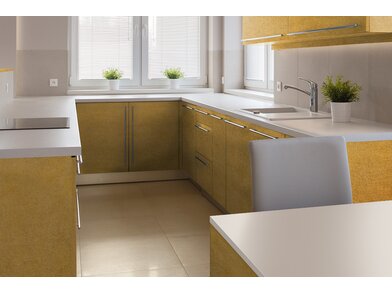 Bodaq APZ26 Classic Golden Fabric ist eine robuste, 210 µm starke, verformbare Interiorfolie in goldener Gewebeoptik mit fühlbarer Haptik, mit der man durch Upcycling nicht nur die Umwelt schont, sondern auch Kosten spart, Zeit reduziert und nebenbei optische Akzente in Hotellerie, ...