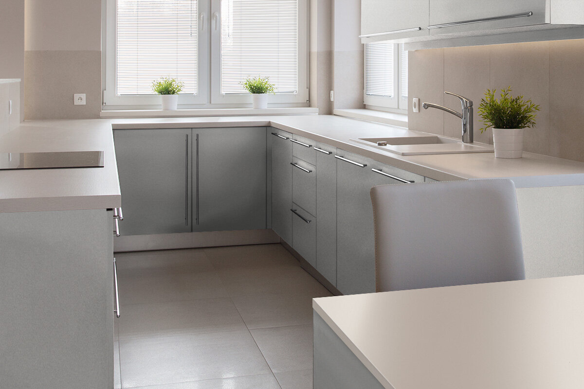 Bodaq DM017 Brushed Light Silver ist eine robuste, 230 µm starke, verformbare Interiorfolie in gebürsteter Metalloptik mit fühlbarer Haptik, mit der man durch Upcycling nicht nur die Umwelt schont, sondern auch Kosten spart, Zeit reduziert und nebenbei optische Akzente in Hotellerie, Gastronomie, Shops, Ladenbau oder Wohnräumen setzt. Bereits vorhandene natürliche Rohstoffe, wie z. B. Türen, Fenster, Fensterbänke, Fliesen, Treppen, Möbel usw., können umweltschonend wiederverwertet werden und schonen unsere Wälder und vermeiden Müll. Die PVC-Folie ist in mehreren Schichten aufgebaut und mit einem positionierbaren Luftkanalklebstoff für blasen- und faltenfreie Verklebungen ausgestattet. Der Schutzfilm auf der Folienoberfläche ist wasserresistent, schmutzabweisend, temperaturbeständig, strapazierfähig und pflegeleicht mit hoher Resistenz gegen viele Flüssigkeiten. Außerdem wirkt er antibakteriell und reduziert die Ansiedlung und Vermehrung von Mikroorganismen, was in Nassräumen ein besonders erwünschter Effekt ist. Die Folie ist frei von Phthalaten (Weichmachern) und schädlichen Schwermetallen, wie Blei oder Quecksilber, und wird mithilfe erneuerbarer Energien hergestellt. Von Beginn der Produktion bis zum fertigen Produkt sind alle CO² Emissionen erfasst und kontrolliert. Die Folie besitzt ein Brandschutzzertifikat B1 nach DIN 4102-1.
