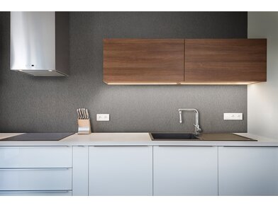 Bodaq RM002 Brushed Dark Silver ist eine robuste, 230 µm starke, verformbare Interiorfolie in gebürsteter Metalloptik mit fühlbarer Haptik, mit der man durch Upcycling nicht nur die Umwelt schont, sondern auch Kosten spart, Zeit reduziert und nebenbei optische Akzente in Hotellerie, Gastronomie, Shops, Ladenbau oder Wohnräumen setzt. Bereits vorhandene natürliche Rohstoffe, wie z. B. Türen, Fenster, Fensterbänke, Fliesen, Treppen, Möbel usw., können umweltschonend wiederverwertet werden und schonen unsere Wälder und vermeiden Müll. Die PVC-Folie ist in mehreren Schichten aufgebaut und mit einem positionierbaren Luftkanalklebstoff für blasen- und faltenfreie Verklebungen ausgestattet. Der Schutzfilm auf der Folienoberfläche ist wasserresistent, schmutzabweisend, temperaturbeständig, strapazierfähig und pflegeleicht mit hoher Resistenz gegen viele Flüssigkeiten. Außerdem wirkt er antibakteriell und reduziert die Ansiedlung und Vermehrung von Mikroorganismen, was in Nassräumen ein besonders erwünschter Effekt ist. Die Folie ist frei von Phthalaten (Weichmachern) und schädlichen Schwermetallen, wie Blei oder Quecksilber, und wird mithilfe erneuerbarer Energien hergestellt. Von Beginn der Produktion bis zum fertigen Produkt sind alle CO² Emissionen erfasst und kontrolliert. Die Folie besitzt ein Brandschutzzertifikat B1 nach DIN 4102-1.