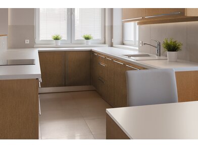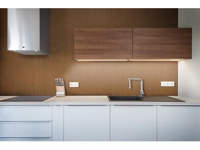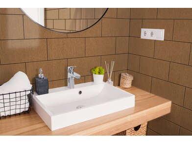 Bodaq RM003 Brushed Brass ist eine robuste, 230 µm starke, verformbare Interiorfolie in gebürsteter Metalloptik mit fühlbarer Haptik, mit der man durch Upcycling nicht nur die Umwelt schont, sondern auch Kosten spart, Zeit reduziert und nebenbei optische Akzente in Hotellerie, Gastronomie, Shops, Ladenbau oder Wohnräumen setzt. Bereits vorhandene natürliche Rohstoffe, wie z. B. Türen, Fenster, Fensterbänke, Fliesen, Treppen, Möbel usw., können umweltschonend wiederverwertet werden und schonen unsere Wälder und vermeiden Müll. Die PVC-Folie ist in mehreren Schichten aufgebaut und mit einem positionierbaren Luftkanalklebstoff für blasen- und faltenfreie Verklebungen ausgestattet. Der Schutzfilm auf der Folienoberfläche ist wasserresistent, schmutzabweisend, temperaturbeständig, strapazierfähig und pflegeleicht mit hoher Resistenz gegen viele Flüssigkeiten. Außerdem wirkt er antibakteriell und reduziert die Ansiedlung und Vermehrung von Mikroorganismen, was in Nassräumen ein besonders erwünschter Effekt ist. Die Folie ist frei von Phthalaten (Weichmachern) und schädlichen Schwermetallen, wie Blei oder Quecksilber, und wird mithilfe erneuerbarer Energien hergestellt. Von Beginn der Produktion bis zum fertigen Produkt sind alle CO² Emissionen erfasst und kontrolliert. Die Folie besitzt ein Brandschutzzertifikat B1 nach DIN 4102-1.