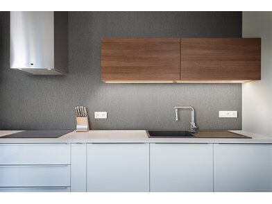 Bodaq RM004 Brushed Middle Silver ist eine robuste, 230 µm starke, verformbare Interiorfolie in gebürsteter Metalloptik mit fühlbarer Haptik, mit der man durch Upcycling nicht nur die Umwelt schont, sondern auch Kosten spart, Zeit reduziert und nebenbei optische Akzente in Hotellerie, Gastronomie, Shops, Ladenbau oder Wohnräumen setzt. Bereits vorhandene natürliche Rohstoffe, wie z. B. Türen, Fenster, Fensterbänke, Fliesen, Treppen, Möbel usw., können umweltschonend wiederverwertet werden und schonen unsere Wälder und vermeiden Müll. Die PVC-Folie ist in mehreren Schichten aufgebaut und mit einem positionierbaren Luftkanalklebstoff für blasen- und faltenfreie Verklebungen ausgestattet. Der Schutzfilm auf der Folienoberfläche ist wasserresistent, schmutzabweisend, temperaturbeständig, strapazierfähig und pflegeleicht mit hoher Resistenz gegen viele Flüssigkeiten. Außerdem wirkt er antibakteriell und reduziert die Ansiedlung und Vermehrung von Mikroorganismen, was in Nassräumen ein besonders erwünschter Effekt ist. Die Folie ist frei von Phthalaten (Weichmachern) und schädlichen Schwermetallen, wie Blei oder Quecksilber, und wird mithilfe erneuerbarer Energien hergestellt. Von Beginn der Produktion bis zum fertigen Produkt sind alle CO² Emissionen erfasst und kontrolliert. Die Folie besitzt ein Brandschutzzertifikat B1 nach DIN 4102-1.
