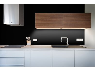 Bodaq HS205 Black Gloss ist eine robuste, 240 µm starke, verformbare Interiorfolie in schwarzer Glanzoptik mit glatter Haptik, mit der man durch Upcycling nicht nur die Umwelt schont, sondern auch Kosten spart, Zeit reduziert und nebenbei optische Akzente in Hotellerie, Gastronomie, Shops, Ladenbau oder Wohnräumen setzt. Bereits vorhandene natürliche Rohstoffe, wie z. B. Türen, Fenster, Fensterbänke, Fliesen, Treppen, Möbel usw., können umweltschonend wiederverwertet werden und schonen unsere Wälder und vermeiden Müll. Die PVC-Folie ist in mehreren Schichten aufgebaut und mit einem positionierbaren Luftkanalklebstoff für blasen- und faltenfreie Verklebungen ausgestattet. Der Schutzfilm auf der Folienoberfläche ist wasserresistent, schmutzabweisend, temperaturbeständig, strapazierfähig und pflegeleicht mit hoher Resistenz gegen viele Flüssigkeiten. Außerdem wirkt er antibakteriell und reduziert die Ansiedlung und Vermehrung von Mikroorganismen, was in Nassräumen ein besonders erwünschter Effekt ist. Die Folie ist frei von Phthalaten (Weichmachern) und schädlichen Schwermetallen, wie Blei oder Quecksilber, und wird mithilfe erneuerbarer Energien hergestellt. Von Beginn der Produktion bis zum fertigen Produkt sind alle CO² Emissionen erfasst und kontrolliert. Die Folie besitzt ein Brandschutzzertifikat B1 nach DIN 4102-1.