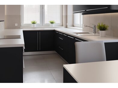 Bodaq S140 Pure Black ist eine robuste, 210 µm starke, verformbare Interiorfolie in eleganter Unicolor-Optik mit fühlbarer Haptik, mit der man durch Upcycling nicht nur die Umwelt schont, sondern auch Kosten spart, Zeit reduziert und nebenbei optische Akzente in Hotellerie, Gastronomie, Shops, Ladenbau oder Wohnräumen setzt. Bereits vorhandene natürliche Rohstoffe, wie z. B. Türen, Fenster, Fensterbänke, Fliesen, Treppen, Möbel usw., können umweltschonend wiederverwertet werden und schonen unsere Wälder und vermeiden Müll. Die PVC-Folie ist in mehreren Schichten aufgebaut und mit einem positionierbaren Luftkanalklebstoff für blasen- und faltenfreie Verklebungen ausgestattet. Der Schutzfilm auf der Folienoberfläche ist wasserresistent, schmutzabweisend, temperaturbeständig, strapazierfähig und pflegeleicht mit hoher Resistenz gegen viele Flüssigkeiten. Außerdem wirkt er antibakteriell und reduziert die Ansiedlung und Vermehrung von Mikroorganismen, was in Nassräumen ein besonders erwünschter Effekt ist. Die Folie ist frei von Phthalaten (Weichmachern) und schädlichen Schwermetallen, wie Blei oder Quecksilber, und wird mithilfe erneuerbarer Energien hergestellt. Von Beginn der Produktion bis zum fertigen Produkt sind alle CO² Emissionen erfasst und kontrolliert. Die Folie besitzt ein Brandschutzzertifikat B1 nach DIN 4102-1.