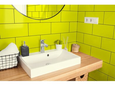 Bodaq S166 Lemon ist eine robuste, 210 µm starke, verformbare Interiorfolie in eleganter Unicolor-Optik mit fühlbarer Haptik, mit der man durch Upcycling nicht nur die Umwelt schont, sondern auch Kosten spart, Zeit reduziert und nebenbei optische Akzente in Hotellerie, Gastronomie, Shops, Ladenbau oder Wohnräumen setzt. Bereits vorhandene natürliche Rohstoffe, wie z. B. Türen, Fenster, Fensterbänke, Fliesen, Treppen, Möbel usw., können umweltschonend wiederverwertet werden und schonen unsere Wälder und vermeiden Müll. Die PVC-Folie ist in mehreren Schichten aufgebaut und mit einem positionierbaren Luftkanalklebstoff für blasen- und faltenfreie Verklebungen ausgestattet. Der Schutzfilm auf der Folienoberfläche ist wasserresistent, schmutzabweisend, temperaturbeständig, strapazierfähig und pflegeleicht mit hoher Resistenz gegen viele Flüssigkeiten. Außerdem wirkt er antibakteriell und reduziert die Ansiedlung und Vermehrung von Mikroorganismen, was in Nassräumen ein besonders erwünschter Effekt ist. Die Folie ist frei von Phthalaten (Weichmachern) und schädlichen Schwermetallen, wie Blei oder Quecksilber, und wird mithilfe erneuerbarer Energien hergestellt. Von Beginn der Produktion bis zum fertigen Produkt sind alle CO² Emissionen erfasst und kontrolliert. Die Folie besitzt ein Brandschutzzertifikat B1 nach DIN 4102-1.