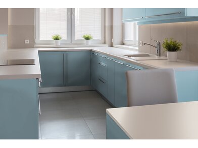 Bodaq S195 Balm Sage ist eine robuste, 210 µm starke, verformbare Interiorfolie in eleganter Unicolor-Optik mit fühlbarer Haptik, mit der man durch Upcycling nicht nur die Umwelt schont, sondern auch Kosten spart, Zeit reduziert und nebenbei optische Akzente in Hotellerie, Gastronomie, Shops, Ladenbau oder Wohnräumen setzt. Bereits vorhandene natürliche Rohstoffe, wie z. B. Türen, Fenster, Fensterbänke, Fliesen, Treppen, Möbel usw., können umweltschonend wiederverwertet werden und schonen unsere Wälder und vermeiden Müll. Die PVC-Folie ist in mehreren Schichten aufgebaut und mit einem positionierbaren Luftkanalklebstoff für blasen- und faltenfreie Verklebungen ausgestattet. Der Schutzfilm auf der Folienoberfläche ist wasserresistent, schmutzabweisend, temperaturbeständig, strapazierfähig und pflegeleicht mit hoher Resistenz gegen viele Flüssigkeiten. Außerdem wirkt er antibakteriell und reduziert die Ansiedlung und Vermehrung von Mikroorganismen, was in Nassräumen ein besonders erwünschter Effekt ist. Die Folie ist frei von Phthalaten (Weichmachern) und schädlichen Schwermetallen, wie Blei oder Quecksilber, und wird mithilfe erneuerbarer Energien hergestellt. Von Beginn der Produktion bis zum fertigen Produkt sind alle CO² Emissionen erfasst und kontrolliert. Die Folie besitzt ein Brandschutzzertifikat B1 nach DIN 4102-1.