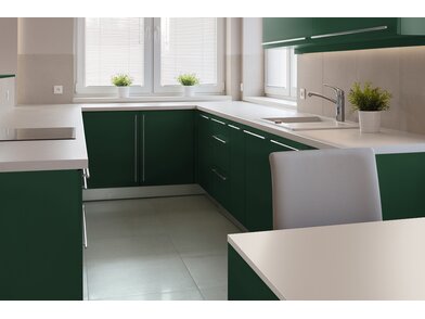 Bodaq S233 Ivy ist eine robuste, 210 µm starke, verformbare Interiorfolie in eleganter Unicolor-Optik mit fühlbarer Haptik, mit der man durch Upcycling nicht nur die Umwelt schont, sondern auch Kosten spart, Zeit reduziert und nebenbei optische Akzente in Hotellerie, Gastronomie, Shops, Ladenbau oder Wohnräumen setzt. Bereits vorhandene natürliche Rohstoffe, wie z. B. Türen, Fenster, Fensterbänke, Fliesen, Treppen, Möbel usw., können umweltschonend wiederverwertet werden und schonen unsere Wälder und vermeiden Müll. Die PVC-Folie ist in mehreren Schichten aufgebaut und mit einem positionierbaren Luftkanalklebstoff für blasen- und faltenfreie Verklebungen ausgestattet. Der Schutzfilm auf der Folienoberfläche ist wasserresistent, schmutzabweisend, temperaturbeständig, strapazierfähig und pflegeleicht mit hoher Resistenz gegen viele Flüssigkeiten. Außerdem wirkt er antibakteriell und reduziert die Ansiedlung und Vermehrung von Mikroorganismen, was in Nassräumen ein besonders erwünschter Effekt ist. Die Folie ist frei von Phthalaten (Weichmachern) und schädlichen Schwermetallen, wie Blei oder Quecksilber, und wird mithilfe erneuerbarer Energien hergestellt. Von Beginn der Produktion bis zum fertigen Produkt sind alle CO² Emissionen erfasst und kontrolliert. Die Folie besitzt ein Brandschutzzertifikat B1 nach DIN 4102-1.