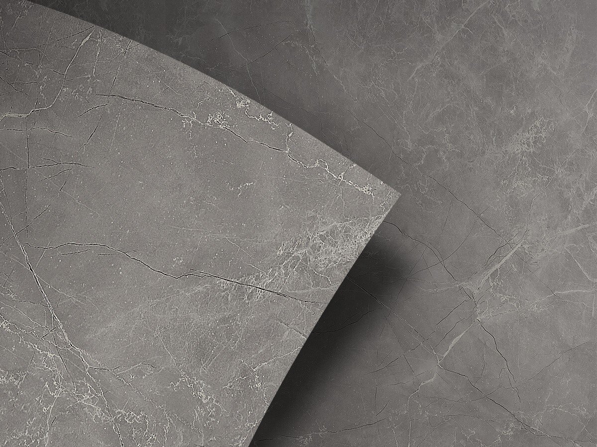 Bodaq PM015 Dark Pretium ist eine robuste, 210 µm starke Interiorfolie in Marmoroptik mit Glatter Haptik, mit der man durch Upcycling nicht nur die Umwelt schont, sondern auch Kosten und Zeit reduziert und nebenbei optische Akzente in Hotellerie, Gastronomie, Shops, Ladenbau oder Wohnräumen setzt. Bereits vorhandene natürliche Rohstoffe, wie z. B. Türen, Fenster, Fensterbänke, Treppen, Möbel usw., können umweltschonend wiederverwertet werden und schonen unsere Wälder und vermeiden Müll. Die verformbare PVC-Folie ist in mehreren Schichten aufgebaut und mit einem positionierbaren Luftkanalklebstoff für blasen- und faltenfreie Verklebungen ausgestattet. Der Schutzfilm auf der Folienoberfläche ist wasserresistent, schhmutzabweisend, temperaturbeständig, strapazierfähig und pflegeleicht mit hoher Resistenz gegen viele Flüssigkeiten. Außerdem wirkt er antibakteriell und reduziert die Ansiedlung und Vermehrung von Mikroorganismen, was in Nassräumen ein besonders erwünschter Effekt ist. Die Folie ist frei von Phthalaten (Weichmachern) und schädlichen Schwermetallen, wie Blei oder Quecksilber, und wird mithilfe erneuerbarer Energien hergestellt. Von Beginn der Produktion bis zum fertigen Produkt sind alle CO² Emissionen erfasst und kontrolliert. Die Folie besitzt ein Brandschutzzertifikat B1 nach DIN 4102-1.