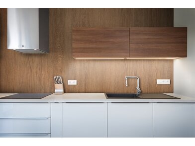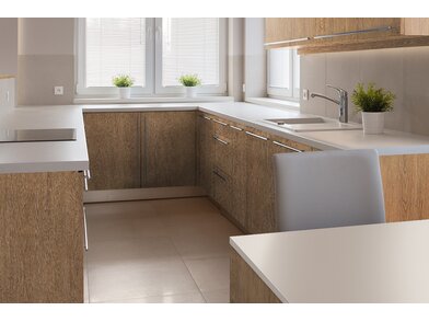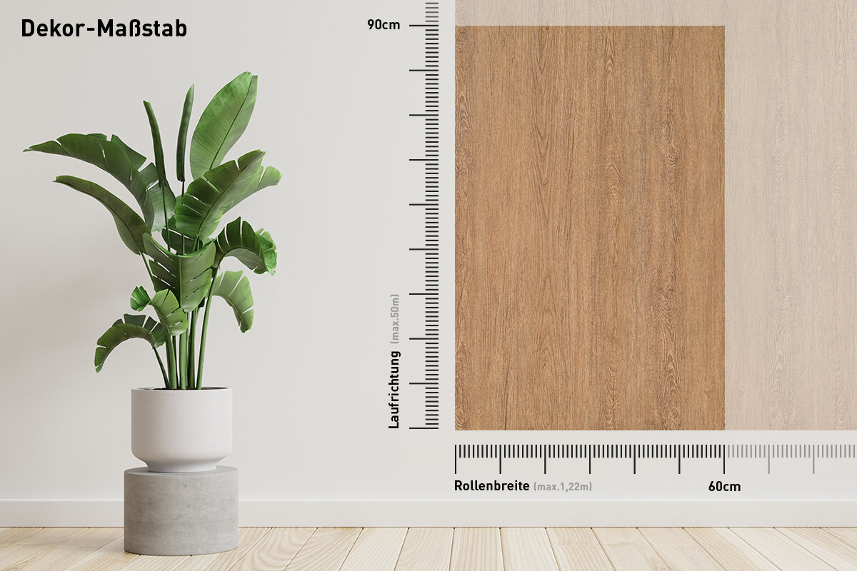 Bodaq PZ901 Ferox ist eine robuste, 260 µm starke, verformbare Interiorfolie in Holzoptik mit fühlbarer Haptik, mit der man durch Upcycling nicht nur die Umwelt schont, sondern auch Kosten spart, Zeit reduziert und nebenbei optische Akzente in Hotellerie, Gastronomie, Shops, Ladenbau oder Wohnräumen setzt. Bereits vorhandene natürliche Rohstoffe, wie z. B. Türen, Fenster, Fensterbänke, Fliesen, Treppen, Möbel usw., können umweltschonend wiederverwertet werden und schonen unsere Wälder und vermeiden Müll. Die PVC-Folie ist in mehreren Schichten aufgebaut und mit einem positionierbaren Luftkanalklebstoff für blasen- und faltenfreie Verklebungen ausgestattet. Der Schutzfilm auf der Folienoberfläche ist wasserresistent, schmutzabweisend, temperaturbeständig, strapazierfähig und pflegeleicht mit hoher Resistenz gegen viele Flüssigkeiten. Außerdem wirkt er antibakteriell und reduziert die Ansiedlung und Vermehrung von Mikroorganismen, was in Nassräumen ein besonders erwünschter Effekt ist. Die Folie ist frei von Phthalaten (Weichmachern) und schädlichen Schwermetallen, wie Blei oder Quecksilber, und wird mithilfe erneuerbarer Energien hergestellt. Von Beginn der Produktion bis zum fertigen Produkt sind alle CO² Emissionen erfasst und kontrolliert. Die Folie besitzt ein Brandschutzzertifikat B1 nach DIN 4102-1.