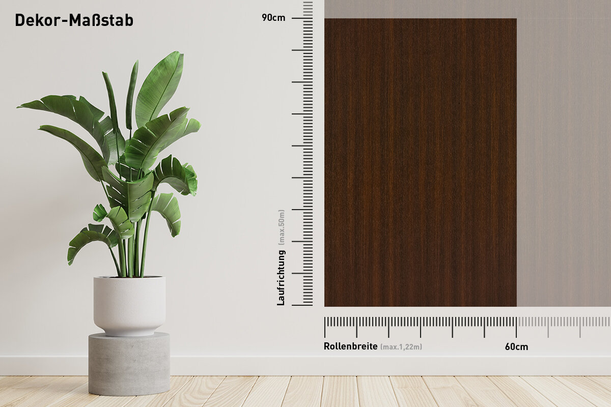 Bodaq W207 Chestnut ist eine robuste, 250 µm starke, verformbare Interiorfolie in Holzoptik mit fühlbarer Haptik, mit der man durch Upcycling nicht nur die Umwelt schont, sondern auch Kosten spart, Zeit reduziert und nebenbei optische Akzente in Hotellerie, Gastronomie, Shops, Ladenbau oder Wohnräumen setzt. Bereits vorhandene natürliche Rohstoffe, wie z. B. Türen, Fenster, Fensterbänke, Fliesen, Treppen, Möbel usw., können umweltschonend wiederverwertet werden und schonen unsere Wälder und vermeiden Müll. Die PVC-Folie ist in mehreren Schichten aufgebaut und mit einem positionierbaren Luftkanalklebstoff für blasen- und faltenfreie Verklebungen ausgestattet. Der Schutzfilm auf der Folienoberfläche ist wasserresistent, schmutzabweisend, temperaturbeständig, strapazierfähig und pflegeleicht mit hoher Resistenz gegen viele Flüssigkeiten. Außerdem wirkt er antibakteriell und reduziert die Ansiedlung und Vermehrung von Mikroorganismen, was in Nassräumen ein besonders erwünschter Effekt ist. Die Folie ist frei von Phthalaten (Weichmachern) und schädlichen Schwermetallen, wie Blei oder Quecksilber, und wird mithilfe erneuerbarer Energien hergestellt. Von Beginn der Produktion bis zum fertigen Produkt sind alle CO² Emissionen erfasst und kontrolliert. Die Folie besitzt ein Brandschutzzertifikat B1 nach DIN 4102-1.