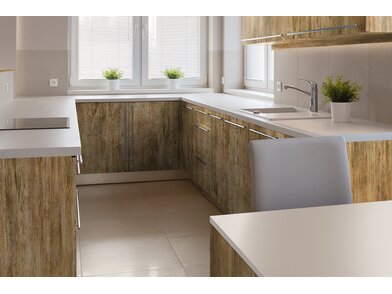 Bodaq W278 Brown Antique ist eine robuste, 250 µm starke, verformbare Interiorfolie in Holzoptik mit fühlbarer Haptik, mit der man durch Upcycling nicht nur die Umwelt schont, sondern auch Kosten spart, Zeit reduziert und nebenbei optische Akzente in Hotellerie, Gastronomie, Shops, Ladenbau oder Wohnräumen setzt. Bereits vorhandene natürliche Rohstoffe, wie z. B. Türen, Fenster, Fensterbänke, Fliesen, Treppen, Möbel usw., können umweltschonend wiederverwertet werden und schonen unsere Wälder und vermeiden Müll. Die PVC-Folie ist in mehreren Schichten aufgebaut und mit einem positionierbaren Luftkanalklebstoff für blasen- und faltenfreie Verklebungen ausgestattet. Der Schutzfilm auf der Folienoberfläche ist wasserresistent, schmutzabweisend, temperaturbeständig, strapazierfähig und pflegeleicht mit hoher Resistenz gegen viele Flüssigkeiten. Außerdem wirkt er antibakteriell und reduziert die Ansiedlung und Vermehrung von Mikroorganismen, was in Nassräumen ein besonders erwünschter Effekt ist. Die Folie ist frei von Phthalaten (Weichmachern) und schädlichen Schwermetallen, wie Blei oder Quecksilber, und wird mithilfe erneuerbarer Energien hergestellt. Von Beginn der Produktion bis zum fertigen Produkt sind alle CO² Emissionen erfasst und kontrolliert. Die Folie besitzt ein Brandschutzzertifikat B1 nach DIN 4102-1.