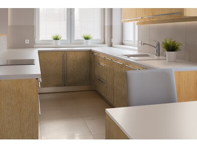 Bodaq ZX117 Grano (ex HZ003) ist eine robuste, 250 µm starke, verformbare Interiorfolie in Holzoptik mit fühlbarer Haptik, mit der man durch Upcycling nicht nur die Umwelt schont, sondern auch Kosten spart, Zeit reduziert und nebenbei optische Akzente in Hotellerie, Gastronomie, Shops, Ladenbau oder Wohnräumen setzt. Bereits vorhandene natürliche Rohstoffe, wie z. B. Türen, Fenster, Fensterbänke, Fliesen, Treppen, Möbel usw., können umweltschonend wiederverwertet werden und schonen unsere Wälder und vermeiden Müll. Die PVC-Folie ist in mehreren Schichten aufgebaut und mit einem positionierbaren Luftkanalklebstoff für blasen- und faltenfreie Verklebungen ausgestattet. Der Schutzfilm auf der Folienoberfläche ist wasserresistent, schmutzabweisend, temperaturbeständig, strapazierfähig und pflegeleicht mit hoher Resistenz gegen viele Flüssigkeiten. Außerdem wirkt er antibakteriell und reduziert die Ansiedlung und Vermehrung von Mikroorganismen, was in Nassräumen ein besonders erwünschter Effekt ist. Die Folie ist frei von Phthalaten (Weichmachern) und schädlichen Schwermetallen, wie Blei oder Quecksilber, und wird mithilfe erneuerbarer Energien hergestellt. Von Beginn der Produktion bis zum fertigen Produkt sind alle CO² Emissionen erfasst und kontrolliert. Die Folie besitzt ein Brandschutzzertifikat B1 nach DIN 4102-1.