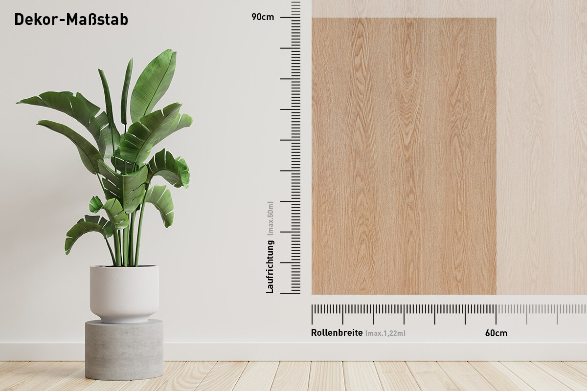 Bodaq ZX131 Radiant Sahara (ex PZ610) ist eine robuste, 260 µm starke, verformbare Interiorfolie in Holzoptik mit fühlbarer Haptik, mit der man durch Upcycling nicht nur die Umwelt schont, sondern auch Kosten spart, Zeit reduziert und nebenbei optische Akzente in Hotellerie, Gastronomie, Shops, Ladenbau oder Wohnräumen setzt. Bereits vorhandene natürliche Rohstoffe, wie z. B. Türen, Fenster, Fensterbänke, Fliesen, Treppen, Möbel usw., können umweltschonend wiederverwertet werden und schonen unsere Wälder und vermeiden Müll. Die PVC-Folie ist in mehreren Schichten aufgebaut und mit einem positionierbaren Luftkanalklebstoff für blasen- und faltenfreie Verklebungen ausgestattet. Der Schutzfilm auf der Folienoberfläche ist wasserresistent, schmutzabweisend, temperaturbeständig, strapazierfähig und pflegeleicht mit hoher Resistenz gegen viele Flüssigkeiten. Außerdem wirkt er antibakteriell und reduziert die Ansiedlung und Vermehrung von Mikroorganismen, was in Nassräumen ein besonders erwünschter Effekt ist. Die Folie ist frei von Phthalaten (Weichmachern) und schädlichen Schwermetallen, wie Blei oder Quecksilber, und wird mithilfe erneuerbarer Energien hergestellt. Von Beginn der Produktion bis zum fertigen Produkt sind alle CO² Emissionen erfasst und kontrolliert. Die Folie besitzt ein Brandschutzzertifikat B1 nach DIN 4102-1.