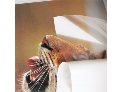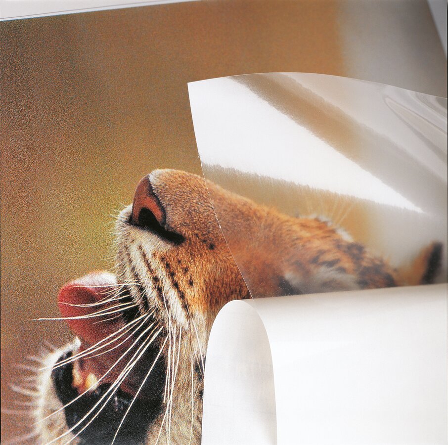 filmolux® photo gloss von Neschen ist eine transparente, monomere weichgemachte, selbstklebende Schutzfolie mit glatt glänzender Oberfläche. Aufgrund des umweltfreundlichen wasserbasierten permanenten Klebers haftet das Material sehr stark und ist somit für viele Medien geeignet. Die Folie schützt nicht nur vor Feuchtigkeit, mechanischen Beschädigungen, Abrieb und anderen äußeren Einflüssen, sondern veredelt das verwendete Medium auch. Zusätzlich verstärkt die Folie die Beständigkeit gegen UV Licht und verlangsamt deswegen das Ausbleichen von Drucken. Sie kann im Innenbereich als auch im Außenbereich verklebt werden.