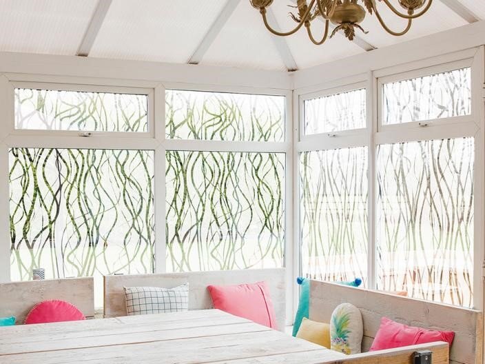Solar Screen Decorative Abstract Film sind weiße, transparente, dekorative Glasdesignfolien aus Polyester mit gehärteter Oberfläche und permanentem Klebstoff. Sie lassen sich auf glatten Oberflächen, wie Schaufenster, Glastrennwände, Acryl, Verkaufsschalter usw., durch Nassverklebung ...