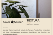 Solar Screen Decorative Textura ist eine weiße, transparente, dekorative Glasdesignfolie aus Polyester mit gehärteter Oberfläche und permanentem Klebstoff. Sie lassen sich auf glatten Oberflächen, wie Schaufenster, Glastrennwände, Acryl, Verkaufsschalter usw., durch Nassverklebung einfach installieren, egal ob vollflächig oder geplottete Logos und Schriften. Sie ist ideal für die Gestaltung von ästhetischen, modernen, auffallenden Dekorationen, Trennwänden in Büros, Einzelhandel, Gastgewerbe usw., wenn interessante Optik sowie Lichtdurchlässigkeit gefragt sind. Dank der M1-Brandschutzzertifizierung nach NFP 92-503 bietet die Folie höchste Sicherheit auch bei strengen baulichen Vorgaben.