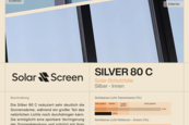 Solar Screen Silver 80 C ist eine leistungsstarke, hochreflektierende Sonnenschutzfolie mit einer Lichtdurchlässigkeit von 23 %. Die beeindruckende Wärmerückweisung von 80 % und ein UV-Schutz von 99 % schützt sie zuverlässig vor Hitze und schädlicher Strahlung. Die Folie ist 60 Mikrometer dick und zeichnet sich durch ihre kratzunempfindliche Oberfläche aus, was sie besonders langlebig und pflegeleicht macht. Dank ihrer reflektierenden Eigenschaften bietet sie zusätzlich einen Sichtschutz bei Tageslicht und verleiht Gebäuden ein modernes Erscheinungsbild. Sie ist für die Innenanwendung konzipiert und besitzt eine garantierte Haltbarkeit von bis zu 12 Jahren. Dank der M1-Brandschutzzertifizierung nach NFP 92-503 bietet die Folie höchste Sicherheit auch bei strengen baulichen Vorgaben.