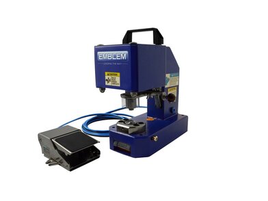 Die Emblem Easy Airpress Standard 4 FP ist eine Weiterentwicklung der erfolgreichen Easy Airpress Standard 3 mit Fußpedal. Sie wird mit einem externen Kompressor mit 6 Bar Betriebsdruck betrieben (nicht im Lieferumfang). Aufgrund der kompakten Bauart, der geringen Maße und einem Gewicht von 7 kg findet die Emblem Airpress Standard 4 überall ihren Platz. Das pneumatische Verpressen der Ösen wird in einem Arbeitsgang durchgeführt, d.h. Lochen des Banners und Verpressen der Öse. Der optionale EyeLED-Pointer hilft Ihnen bei der Positionierung der Öse. Dieser wird mit einem Batteriecase und einem Netzteil geliefert. Der EyeLED-Punkt wird mittig auf der Unterseite der Ösenaufnahme wiedergegeben und ermöglicht somit eine genaue Positionierung der Öse.