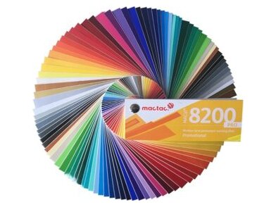 Der Farbfächer 8200 Pro von Mactac zeigt ein umfangreiches Sortiment an premium Folien in einem handlichen Fächer. Er bietet die Möglichkeit verschiedenste Originalmuster von Mactac auf einem Blick betrachten zu können. Die Auswahl des Kunden wird mit ihm vereinfacht und er dient als besondere Verkaufsunterstützung, da die Farben und Oberflächen der Folien genau betrachtet werden können.