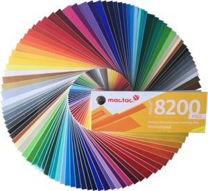 Der Farbfächer 8200 Pro von Mactac zeigt ein umfangreiches Sortiment an premium Folien in einem handlichen Fächer. Er bietet die Möglichkeit verschiedenste Originalmuster von Mactac auf einem Blick betrachten zu können. Die Auswahl des Kunden wird mit ihm vereinfacht und er dient als besondere Verkaufsunterstützung, da die Farben und Oberflächen der Folien genau betrachtet werden können.