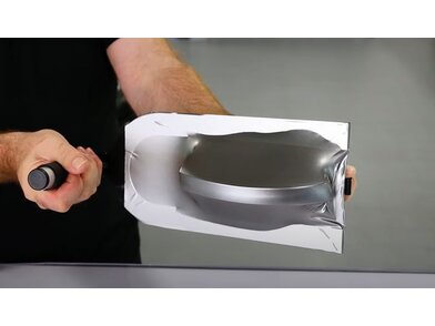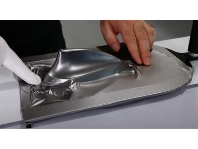 Das Wrap-U-ezee Flat M Application Tool ist ein speziell entwickeltes Werkzeug für die Verklebung von hervorstehenden Teilen. Mit dem Wrap-U-ezee Flat können Türgriffe, Außenspiegel sowie kleine und große Teile direkt am Fahrzeug verklebt werden, ohne dass diese demontiert werden müssen. Die vorgespannte Folie wird einfach von oben auf das zu verklebende Teil gelegt, angerakelt und anschließend zugeschnitten.