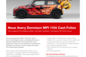 Avery Dennison MPI 1104 Easy Apply ist eine glänzend weiße selbstklebende, gegossene Vinylfolie mit hoher Flexibilität und Anpassungsfähigkeit und wurde speziell für exzellente Druckergebnisse mit Eco-Solvent-, Solvent-, Latex- und UV-härtende Druckfarben entwickelt. Dank des neuen positionierbaren, permanenten Klebstoffs ist die Folie während des Aufbringens leicht zu platzieren, die Easy Apply Technologie sorgt für eine blasen- und faltenfreie Verklebung. Die Folien empfehlen sich für das Aufbringen auf sehr unregelmäßigen Oberflächen, da weder Primer aufgetragen noch Einschnitte vorgenommen werden müssen. Erfüllt die Brandschutznorm und ist zertifiziert nach EN13501-1.